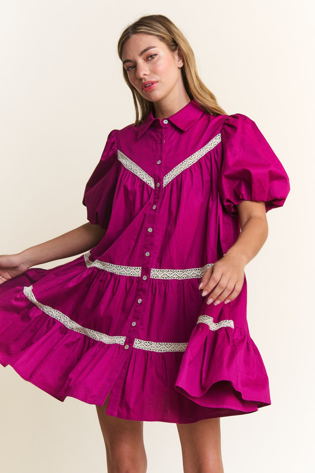 Magenta Boho Babydoll Dress