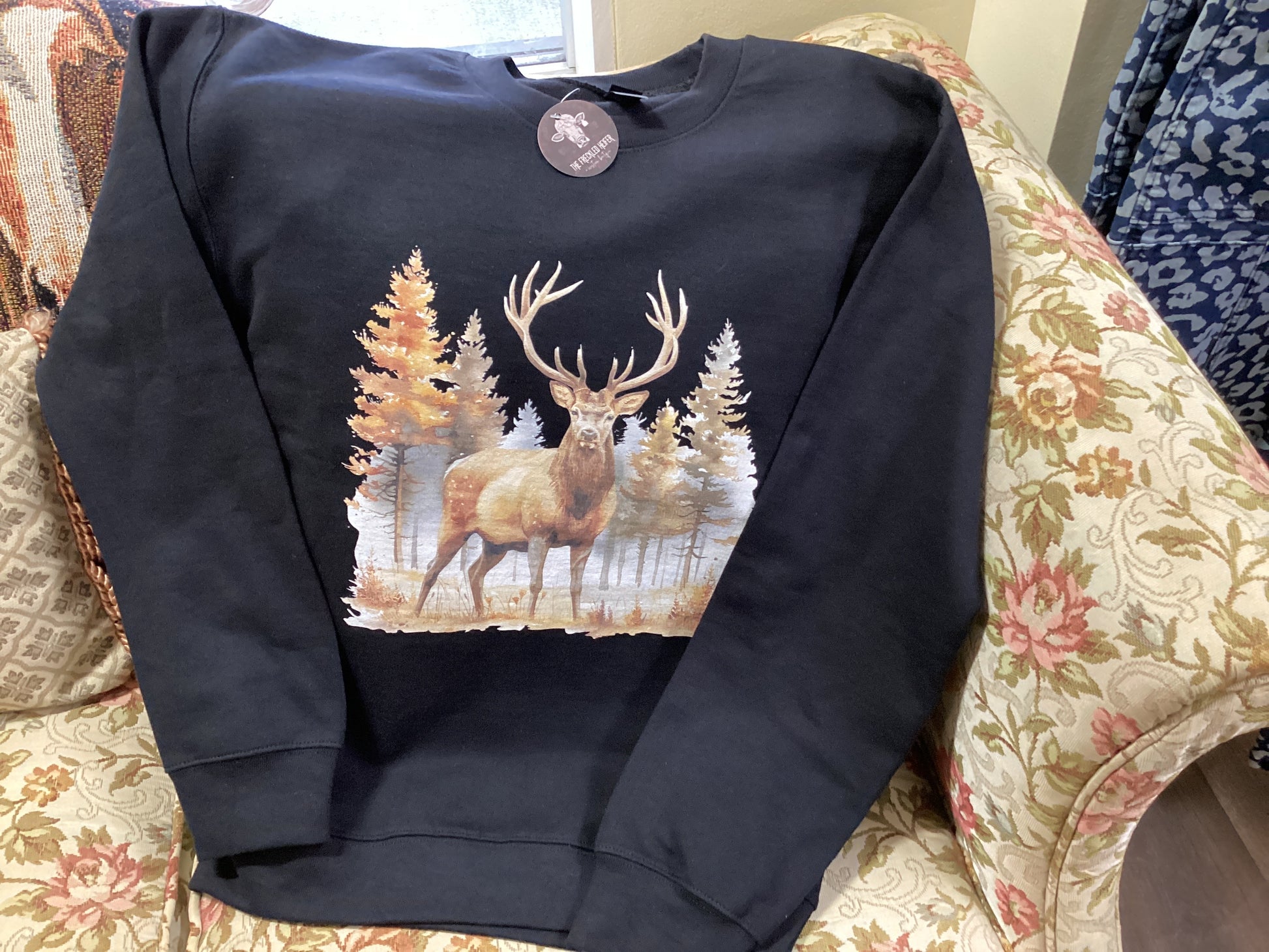 Screen Print Buck Deer Woodland Scene Sweatshirt